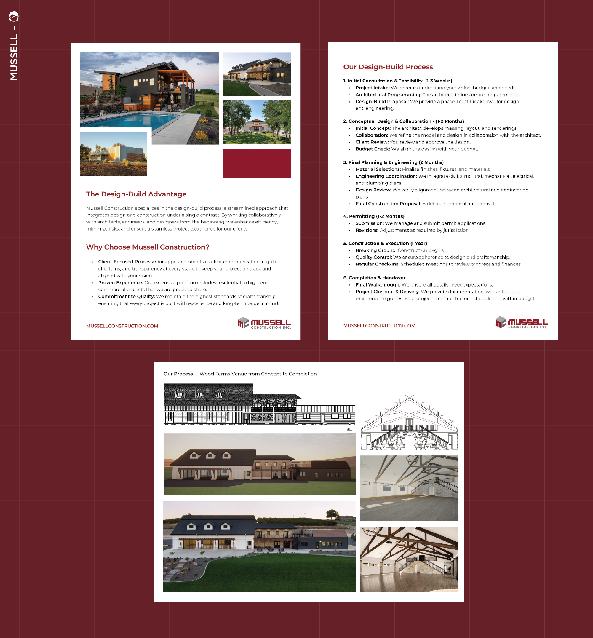 I redesigned and built Mussell Construction’s website after a brand refresh, creating a cohesive digital experience and brand-consistent print materials for potential customers. The project included photography art direction and a streamlined site to showcase flagship work and services.